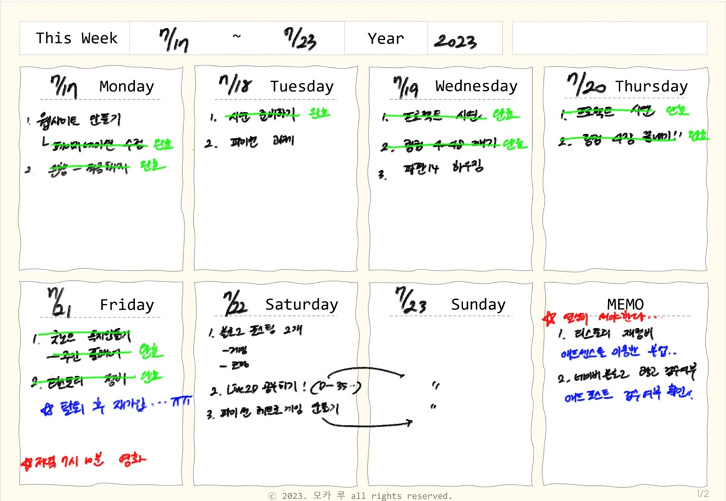 메모나 그 주 목표를 쓸 수있는 칸도 준비했습니다~